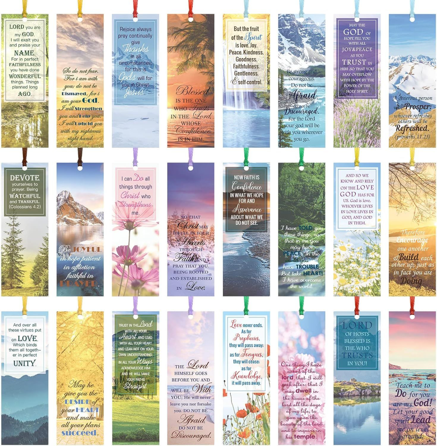 120 beautifully designed bookmarks featuring serene landscape art paired with Scripture. A peaceful visual companion for quiet time, prayer, and reflection — each one a reminder of God’s creation and Word.
